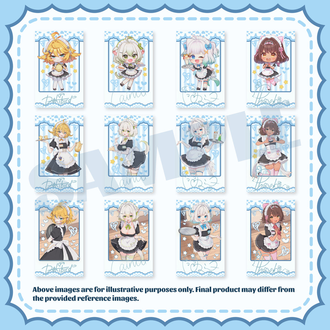 Single cheki-style card of each VTuber guest in an Asayoru Maid Cafe uniform! Each purchased item will get 1 of 12 possible cards.